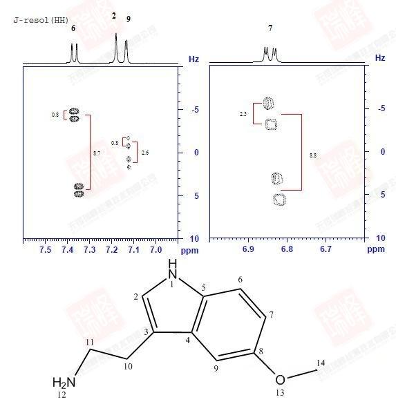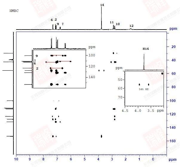 大家可以试着围绕N,O画出两个分子间可能形成的各种氢键连接便能理解这一画面出现的原因了。不过还是可以看到,最强的NOE信号出现在H6-H7,H9-H14以及H9-H10之间,这暗示着分子内氢键在整个体系中占了最大的比例。