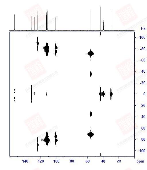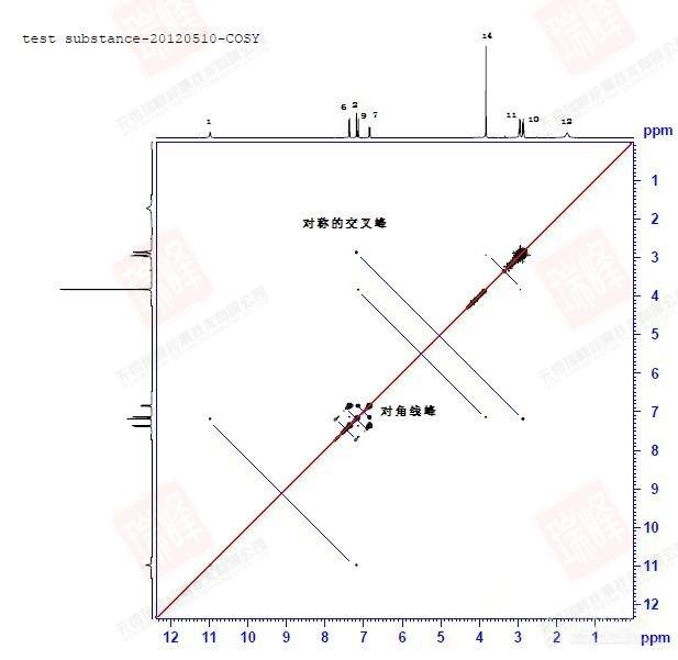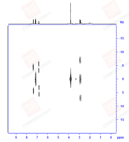 最后要提的一点是,由于脉冲序列相似,NOESY中经常夹杂着COSY信号,这点需要在解谱时予以区分(好在键相近的核空间距离往往接近)。而另外一种用来检测分子内化学交换的谱图(EXSY)和NOESY用的是同一个脉冲序列。