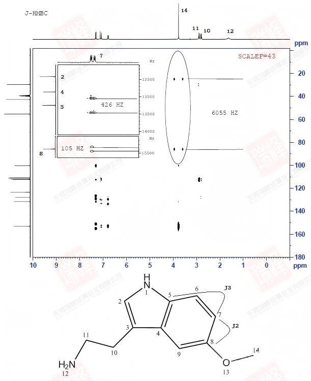 在日常应用中,NOESY的实验参数优化就是混合时间的优化。上图中横坐标为混合时间,虚线为不同混合时间对应下交叉峰的强弱,可以看到对于不同大小的分子,存在一个最优的混合时间使交叉峰最强(一般分子量大的最优混合时间短)。通常,这个时间接近于分子各峰平均的纵向弛豫时间T1,针对我们的化合物,我通过零点法优化混合时间如下